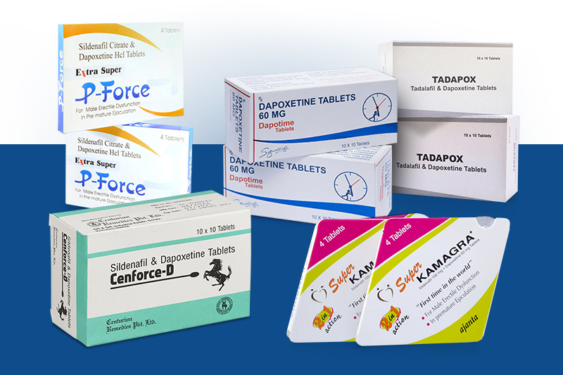 Σήμερα στην αγορά μπορείτε επίσης να βρείτε προϊόντα που περιέχουν όχι μόνο καθαρή δαποξετίνη αλλά και το συνδυασμό της με δραστικά συστατικά τύπου sildenafil ή tadalafil για τη συνδυασμένη θεραπεία της στυτικής δυσλειτουργίας (ΣΔ) και της πρόωρης εκσπερμάτωσης (ΠΕ).
